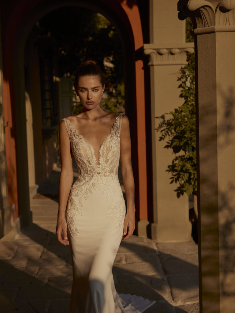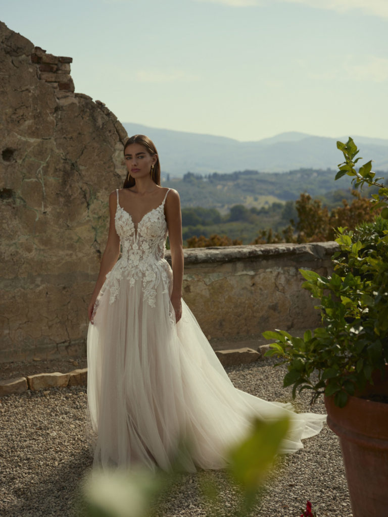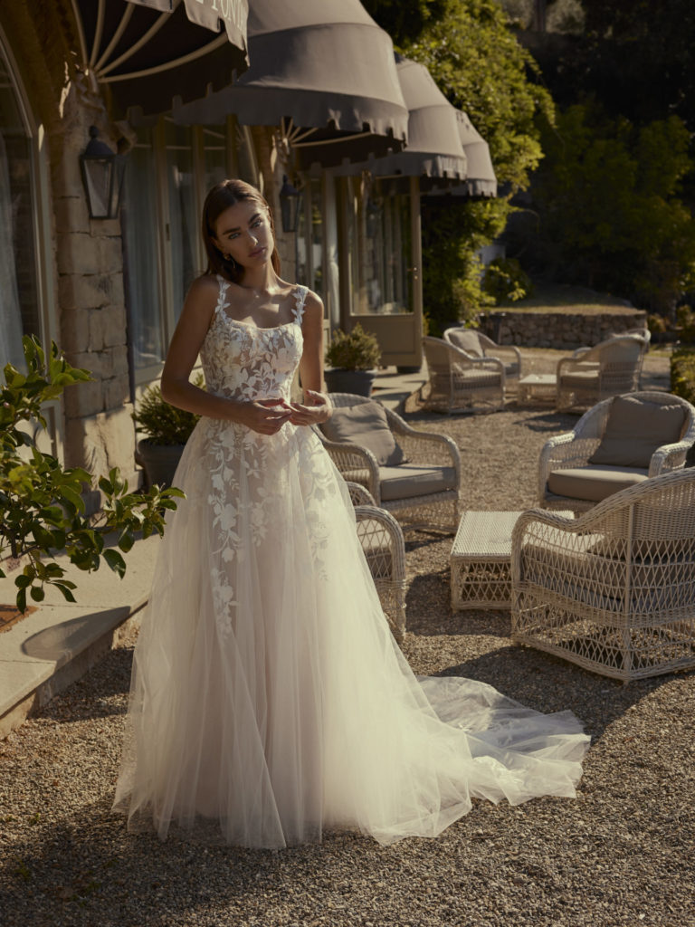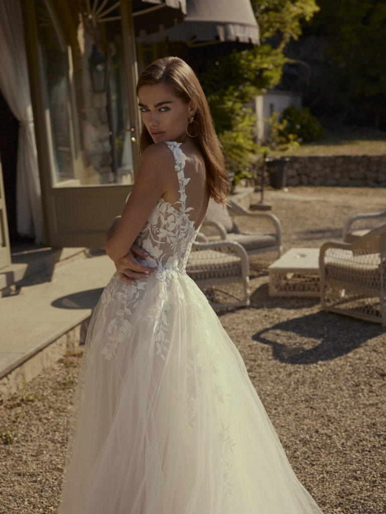 A-line, princesse, sirène, trapèze ; dos travaillés, éléments amovibles selon les modèles.
